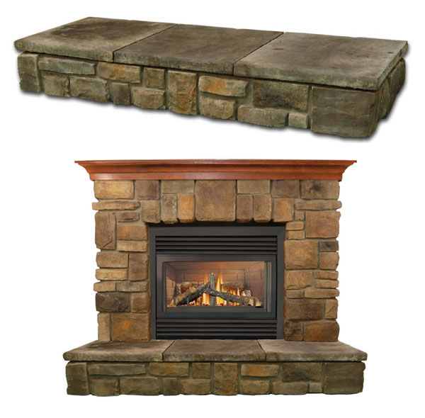 Award winning Elk Ridge fireplace surround offers you all the rustic charm of a natural cut stone hearth, without the trouble associated with the masonry jobs thanks to its innovative one piece fabrication and quick installation.